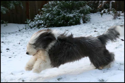 The neighbor had a friend visiting with two sheepdogs. They came over to play for a bit. Andy and the sheepdogs were so cute together. I can't believe how much they look alike. Jayda played too but looked like the black sheep!